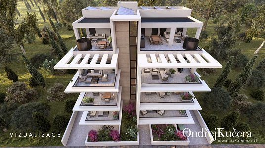 Tento apartmán 3+kk s celkovou výměrou 156 m² se nachází ve třetím patře a má vše, co potřebujete k pohodlnému životu u moře. Samotná obytná plocha 84,4 m² působí útulně a prakticky i díky dvěma koupelnám. Skutečným bonusem je soukromá střešní nekrytá terasa 26,70 m² s velkým úložným prostorem a samostatnou toaletou (16,2 m²) , kam se dostanete po točících schodech ze své 25,3 m² velké terasy s přístupem z obývacího pokoje. Jde o prostory, kde můžete snídat, večer grilovat a po celý den jen tak odpočívat. Navíc získáte vlastní úložný prostor 3,4 m² a dvě garážová stání v přízemí domu.
